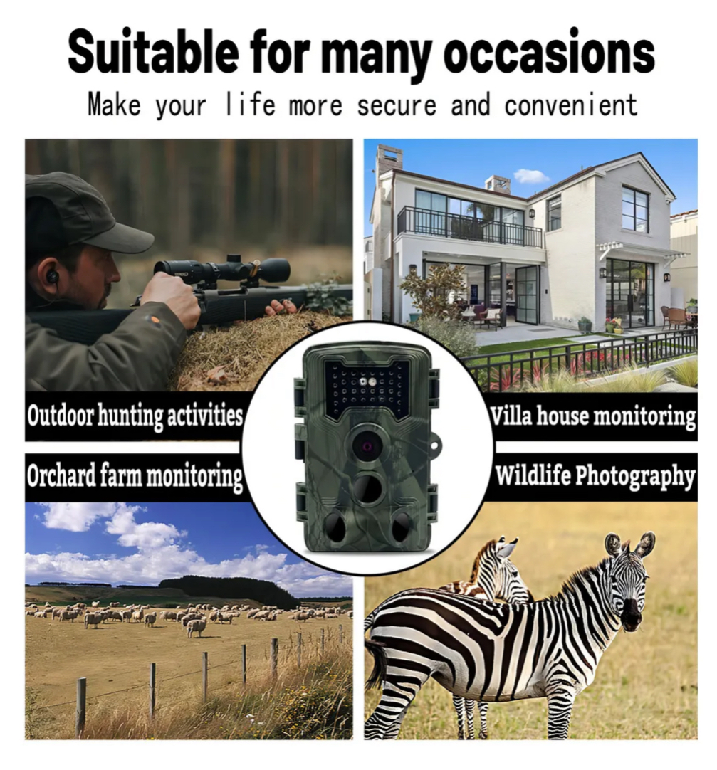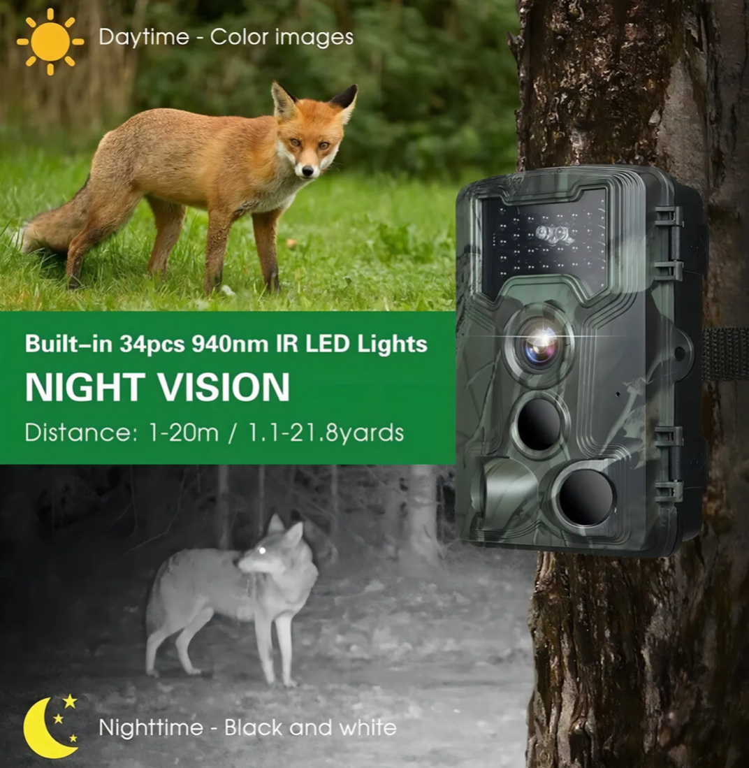 Esta cámara trampa nocturna de 36 MP con ángulo amplio de 120° está diseñada para monitoreo de fauna silvestre y vigilancia ambiental, no para cacería. Se activa automáticamente por movimiento y permite registrar animales de día y de noche sin presencia humana directa, reduciendo perturbación y sesgos de observación.